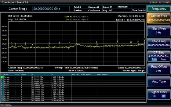 - Чувствительность измерения 50 ГГц составляет - 141 дБм/Гц, а типичное значение составляет - 150 дБм / Гц с предварительным усилителем