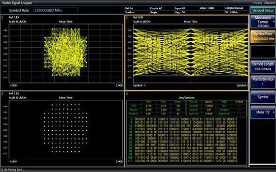 Обеспечение гибких функций демодуляции множества сигналов цифровой модуляции с одной несущей. Он может предоставлять векторные диаграммы, диаграммы созвездий, диаграммы глаз, диаграммы спектра и т.д. Для анализа характеристик сигнала модуляции.