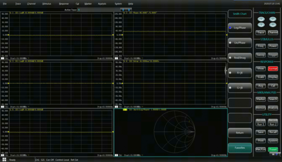 - Предлагаем различные форматы отображения, такие как логарифмическая амплитуда, линейная амплитуда, КСВ, групповая задержка, диаграмма Смита и полярные координаты;