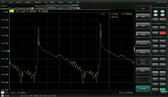 Анализатор векторной сети серии S3604 может осуществлять переключение между частотной областью и временной областью результатов измерений, получать сходство и корреляцию формы сигнала в разное время и получать характеристические параметры, отражающие рабочее состояние механического оборудования. Эта функция может использоваться для определения разрывов в устройствах, приспособлениях или кабелях для определения точного местоположения неисправности.