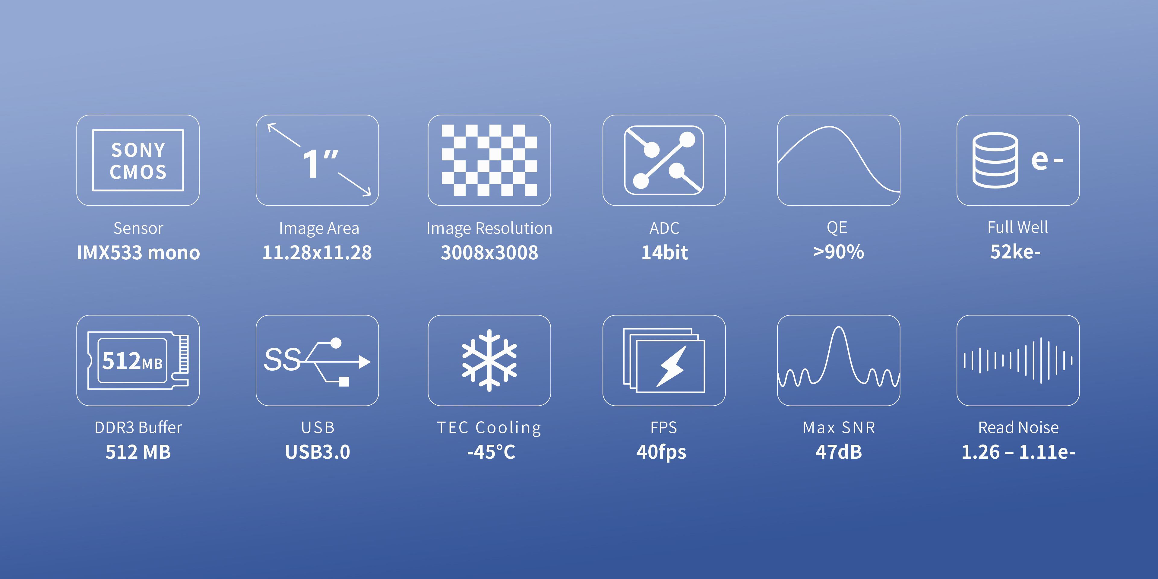 ATR533M использует передовые оптические технологии SONY, обладая 9 мегапикселями и высокой квантовой эффективностью, что позволяет пользователям легко получать более четкие изображения объектов глубокого космоса. Отсутствие свечения усилителя, сверхнизкий уровень шума считывания (всего 1,1e) и квадратные пиксели размером 3,76 мкм гарантируют исключительное качество изображения. Кроме того, камера оснащена превосходной системой охлаждения TEC, обеспечивающей точный контроль температуры с отклонением в пределах 0,1℃, а нагреватель для предотвращения образования росы (обогрев окна) дополнительно повышает производительность. Это камера, специально созданная для начинающих фотографов объектов глубокого космоса!