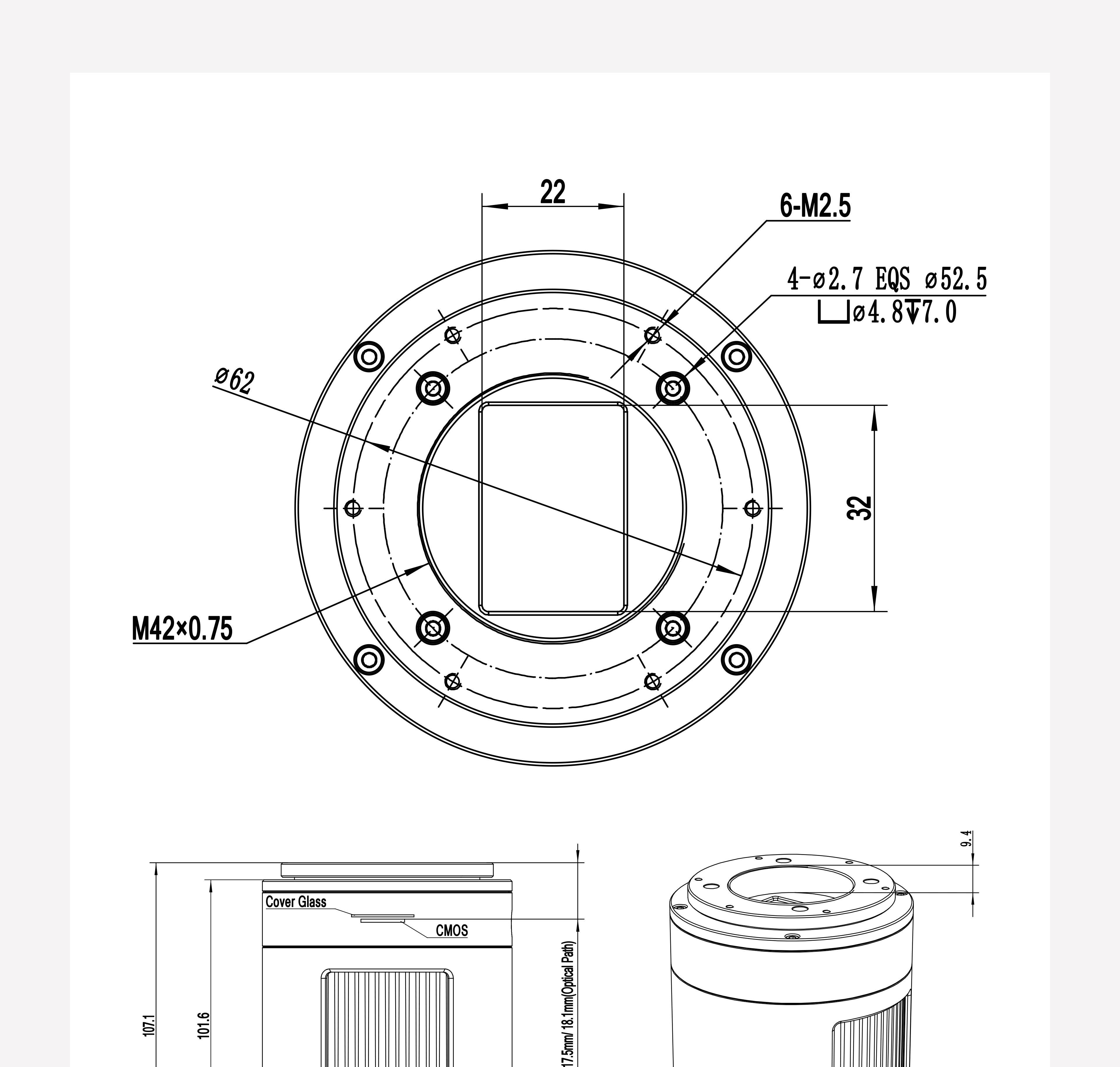 ATR533M оснащен 1-дюймовым цветным оптическим сенсором Sony imx533. Разрешение: 3008*3008. Размер пикселя: 3,76 мкм*3,76 мкм. Площадь изображения: 11,31 мм x 11,28 мм. Диагональ: 15,97 мм.