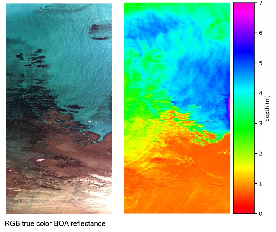Образец применения коррекции DROACOR для анализа глубины прибрежных вод