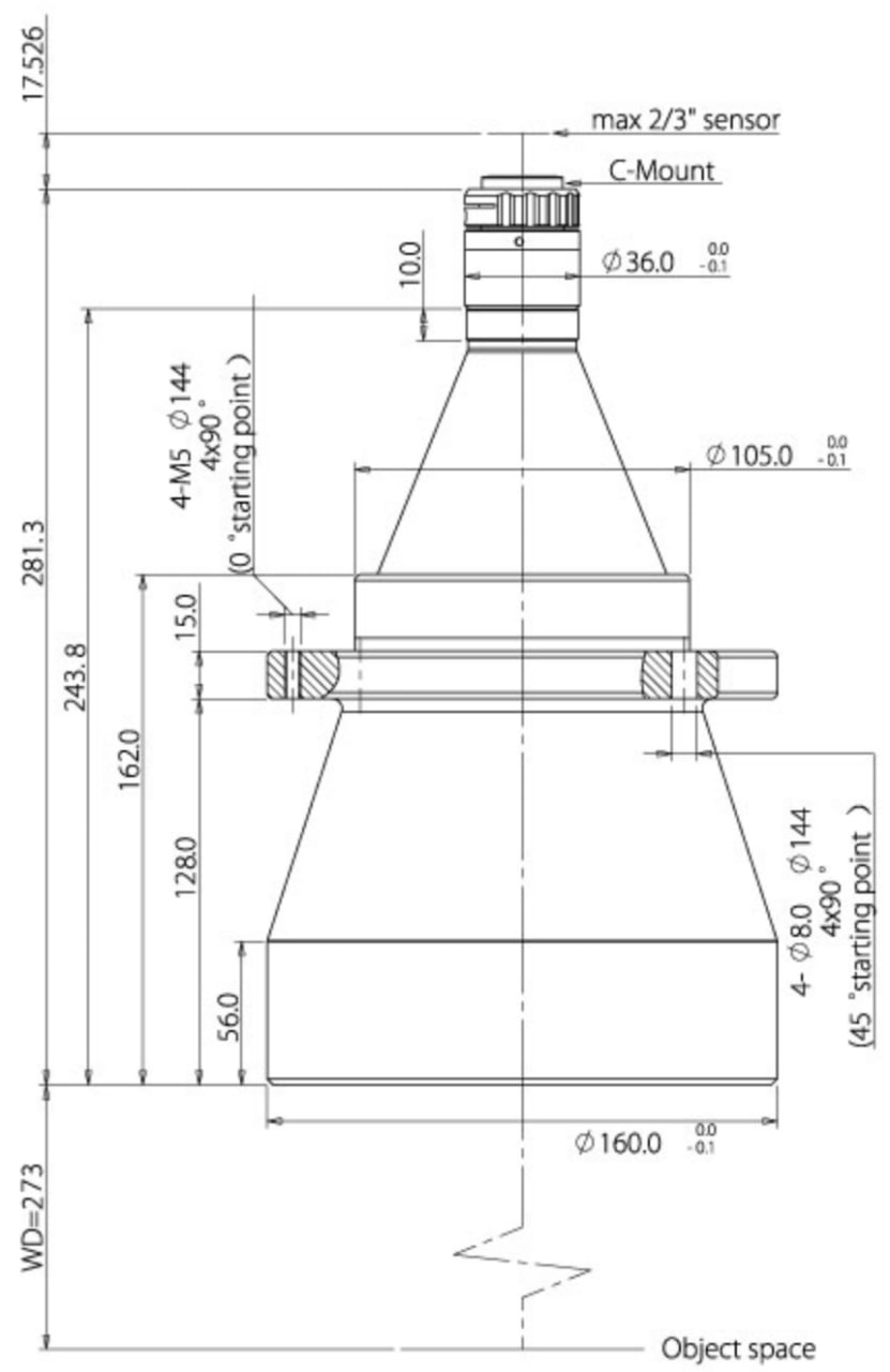 Объектив BTL-0.095X-280-23(LM) разработан для задач, где важны высокая плотность деталей на изображении и бескомпромиссная геометрическая точность. Он создан для работы с профессиональными C-Mount камерами, оснащёнными сенсором 2/3", он обеспечивает превосходное разрешение и идеальную телецентричность для контроля небольших и средних прецизионных объектов.