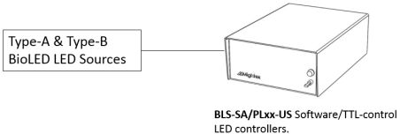 Светодиодные контроллеры с управлением с помощью программного обеспечения/TTL сигнала моделей BLS-SA02-US, BLS-SA04-US, BLS-PL02-US и BLS-PL04-US от Mightex управляют выходной интенсивностью излучения светодиода как с помощью программного обеспечения (интерфейс USB или RS232, по выбору), так и TTL триггеров (триггерные входы с BNC-разъемами).