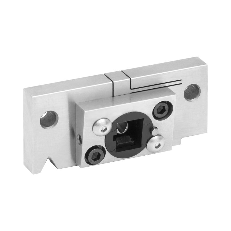 CC250SA – прецизионный держатель для оптоволоконных разъёмов SC/APC с феррулой Ø2,5 мм. V‑образная канавка профилирована под стандартный корпус SC, поэтому разъём укладывается с надёжной трёхточечной опорой и прижимается сверху планкой или винтом. Это обеспечивает стабильное положение коннектора и фиксированную ориентацию APC‑скоса, что критично для минимизации обратных отражений и воспроизводимой юстировки. Держатель легко интегрируется в оптические стенды: на корпусе предусмотрены резьбовые отверстия под стойки и небольшие платформы.