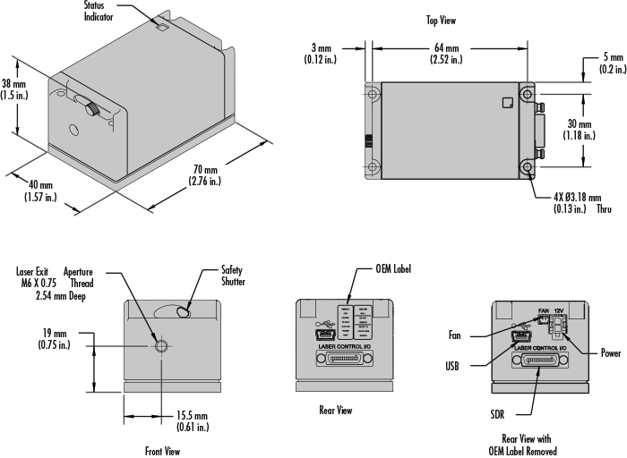 Примечание. Для работы требуется блок питания, который продается отдельно. OBIS remote требуется для сертифицированных CDRH систем. Рекомендуется радиатор OBIS.