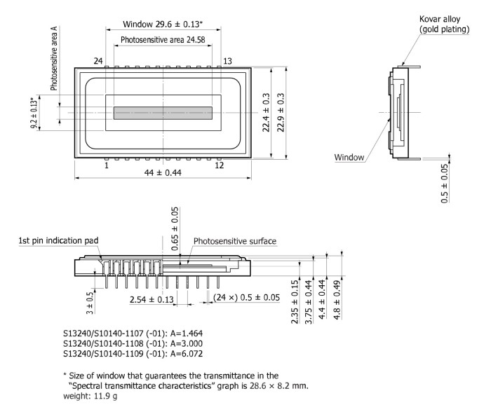 Серии S13240/S13241 и S10140/S10141 (-01) представляют собой датчики изображения области FFT-CCD с обратным уменьшением, разработанные для обнаружения при слабом освещении. С помощью операции биннинга их можно использовать в качестве линейного датчика изображения с вытянутой по вертикали светочувствительной областью. Это делает их пригодными для использования в спектрофотометрии. Операция биннинга обеспечивает значительное улучшение сигнала и скорости обработки сигналов по сравнению с обычными методами, с помощью которых сигналы суммируются в цифровом виде внешней схемой. Эти продукты отличаются низким уровнем шума и темновым током (режим MPP). Это позволяет обнаруживать при слабом освещении за счет увеличения времени интеграции. Кроме того, широкий динамический диапазон был достигнут за счет увеличения заряда насыщения по сравнению с предыдущим продуктом (серии S10140 / S10141).Серия S13240/S13241 относится к высокоскоростному типу считывания, а серия S10140/S10141 (-01) - к малошумящему типу. Эти продукты имеют размер пикселя 12 × 12 мкм и доступны в фоточувствительной области в диапазоне от 24,576 (Г) × 1,464 (В) мм2 (2048 × 122 пикселей) до 24,576 (Г) × 6,072 (В) мм2 (2048 × 506 пикселей).