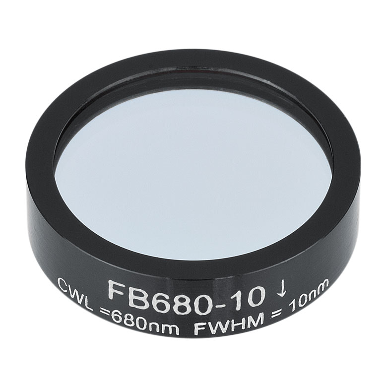 FB680-10 — полосовой фильтр с центральной длиной волны 680 нм и шириной полосы пропускания 10 нм, обеспечивающий высокую передачу в узком диапазоне и эффективное подавление вне полосы.