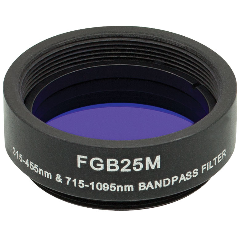 Описание: Фильтр из окрашенного стекла BG3, ?25 мм. Обеспечивает пропускание в диапазоне 315 – 445 нм и 715 – 1095 нм.