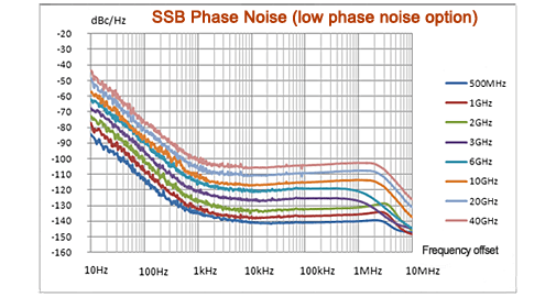 Серия S1435 обеспечивает два уровня фазового шума для пользователей. Стандартный фазовый шум измеряется на уровне -101 ДБС/Гц (10 ГГц при 10 кГц), а фазовый шум может достигать -116 Дбс/Гц (10 ГГц при 10 кГц), если выбран параметр низкий уровень фазового шума.