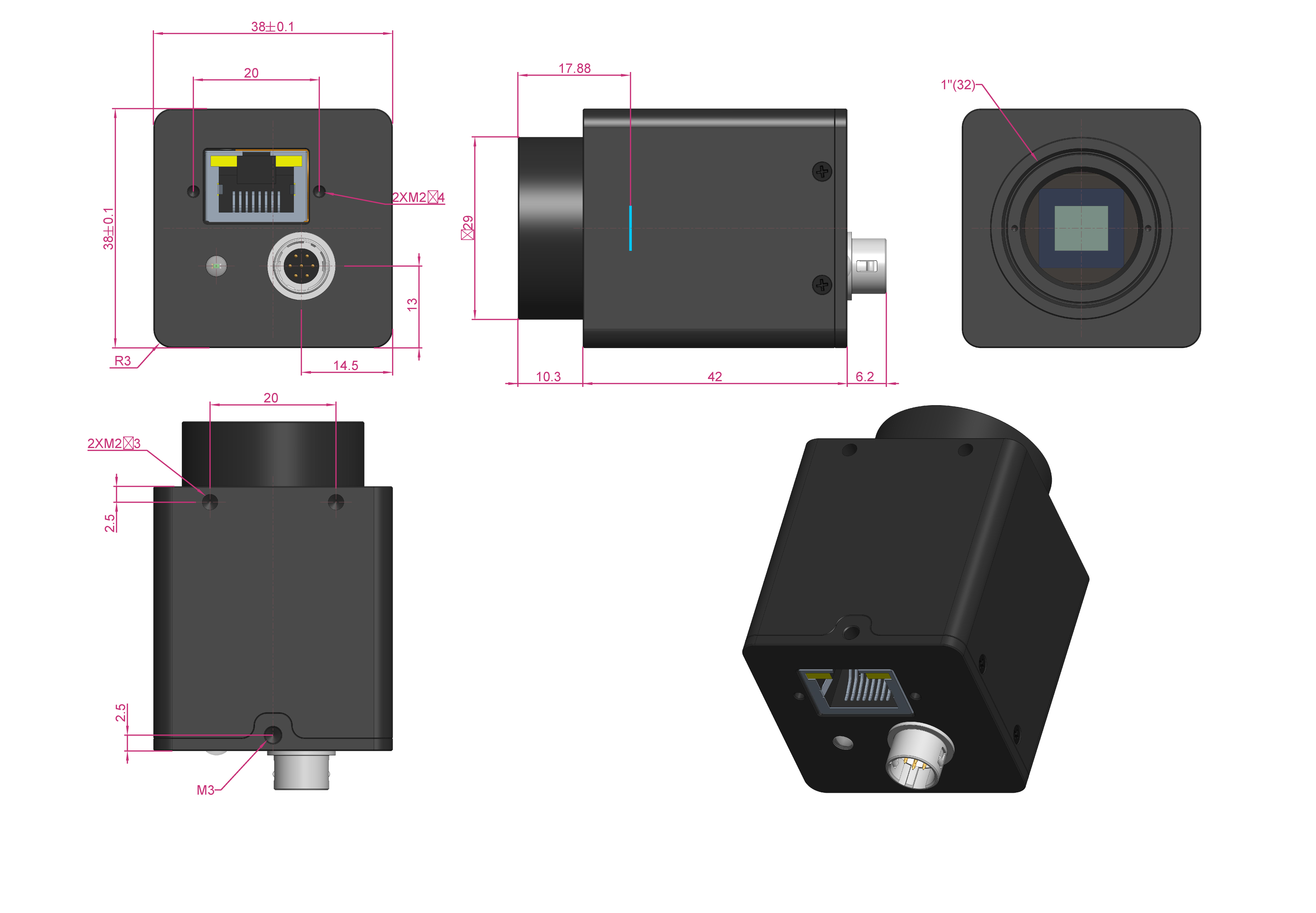 Компактный кубический корпус размером 38 мм × 38 мм × 33 мм упрощает встраиваемое развертывание, сохраняя при этом профессиональное качество изображения для требовательных приложений автоматизации.