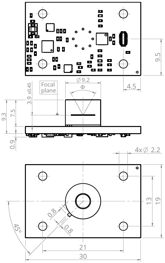 Особенности:- Спектральный диапазон: от 2.5 до 5.7 мкм; - Площадь сенсора: 1x1 мм; - Встроенный регулятор температуры; - Настраиваемая температура чипа; - Низкий угловой шум 1/f: 50 Гц; - Полоса пропускания: от DC до 3 МГц или от DC до 6 МГц; - Одиночный источник питания низкого напряжения: 3.3 В; - Дифференциальный выход; - Маленькая плата для соединения; - Малые размеры: 30 мм x 19 мм x 10 мм. |
