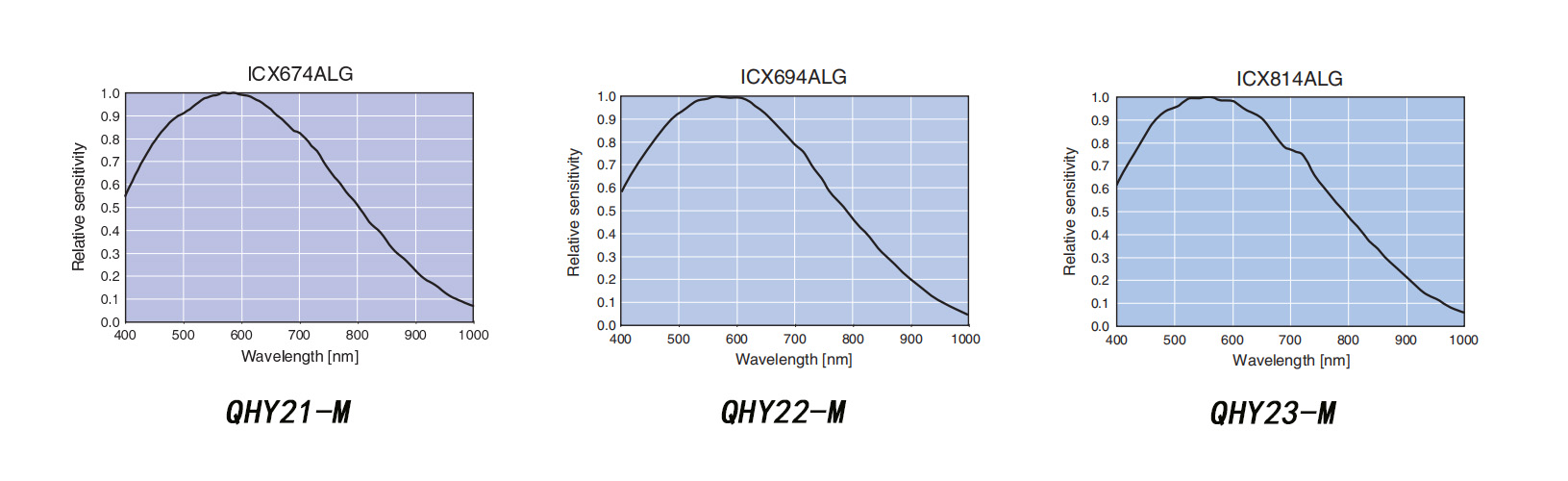 В камерах QHY21, QHY22 и QHY23 от QHYCCD используются высокочувствительные сенсоры Sony EXview HAD CCD II, ICX674, ICX694 и ICX814, соответственно. Эти датчики имеют очень высокую квантовую эффективность (около 80%) и очень низкий тепловой шум. Двухступенчатая технология термоэлектрического охлаждения QHYCCD снижает температуру датчика до 45 °C ниже температуры окружающей среды для исключительно низкого темнового тока. По сравнению с конкурирующими моделями камеры QHY обеспечивают дополнительное охлаждение от -10°C до -15°C, что обеспечивает очень низкий уровень шума и равномерный фон даже в жаркие летние месяцы.