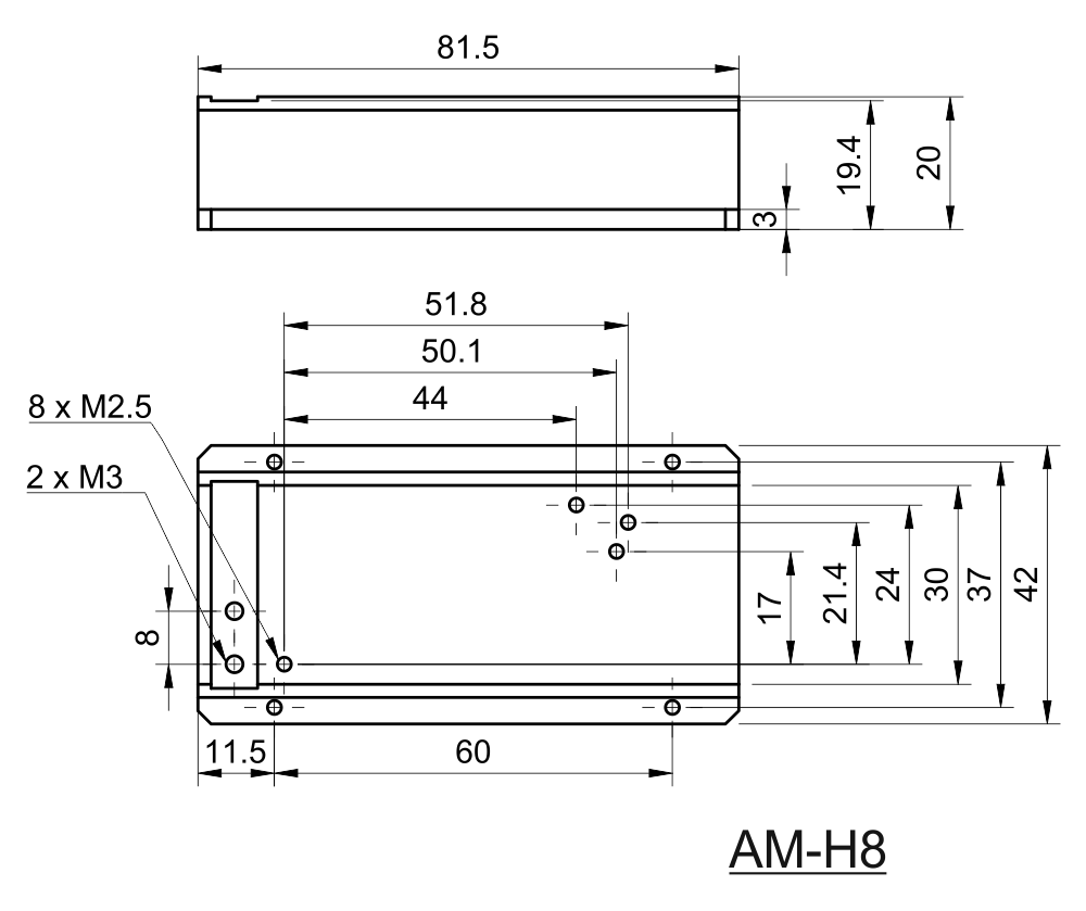- Боковые выступы могут быть зажаты (зажимы не входят в комплект и не предлагаются Integrated Optics) или закреплены винтами;