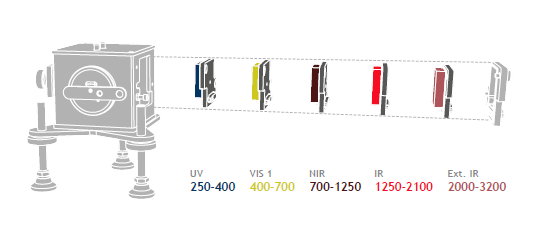 250 нм - 3200 нм, зависит от комплекта оптики |