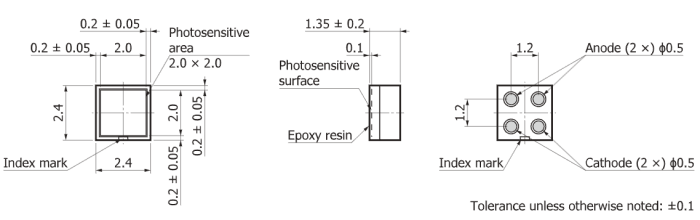 В MPPC используются электроды со сквозными отверстиями, называемые TSV (through-silicon via). Поскольку не требуется места для проволочного соединения электродов, зазор (между краем корпуса и фоточувствительной областью MPPC) по внешней периферии уменьшается до 0.2 мм с четырех сторон, что позволяет использовать четырехстороннюю стыковку.