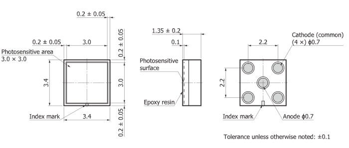 В MPPC используются электроды со сквозными отверстиями, называемые TSV (through-silicon via). Поскольку не требуется места для проволочного соединения электродов, зазор (между краем корпуса и фоточувствительной областью MPPC) по внешней периферии уменьшается до 0.2 мм с четырех сторон, что позволяет использовать четырехстороннюю стыковку.