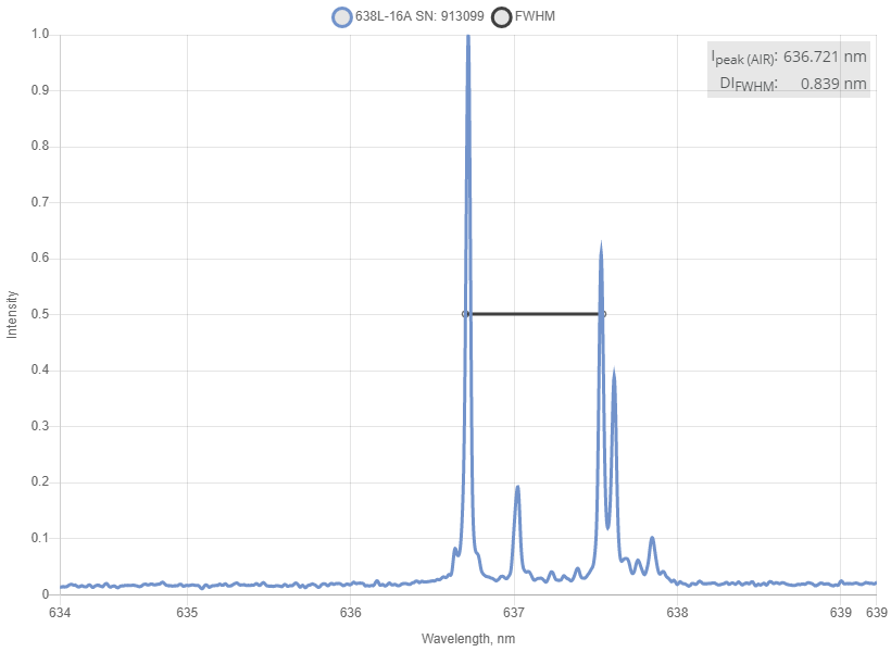 | Центральная длина волны, нм | 635 | 638 | 641 |