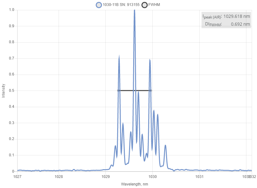 | Центральная длина волны, нм | 1029 | 1030.5 | 1033 | |