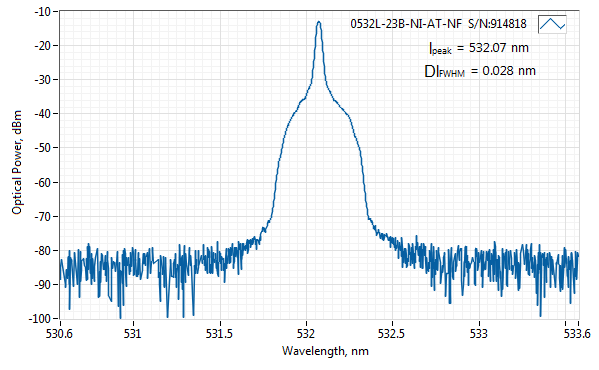 1. Измерено с помощью сканирующего интерферометра Фабри-Перо с разрешением 7.5 МГц и частотой сканирования около 10 Гц. Тестирование интерферометра не проводится для каждого производимого лазера, вместо этого стандартным тестом является измерение OSA с разрешением 10-20 мкм;