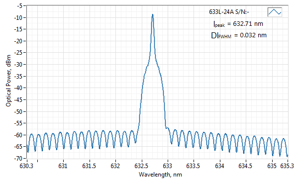 1. Измерено с помощью сканирующего интерферометра Фабри-Перо с разрешением 7.5 МГц и частотой сканирования около 10 Гц. Тестирование интерферометра не проводится для каждого производимого лазера, вместо этого стандартным тестом является измерение OSA с разрешением 10-20 мкм;