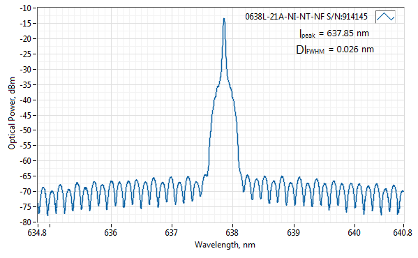 Лазер, работающий на длине волны 638 нм с одной продольной модой, может использоваться для комбинационного рассеяния света (Романовская спектроскопия) или SERDS (shifted excitation Raman differential spectroscopy) спектроскопии. Вместе с SLM лазером на длине волны 633 нм данный модуль идеально подходит для SERDS. Рамановские сигналы намного легче отделить от фонового шума по сравнению с традиционной рамановской спектроскопией. Лазер имеет VBG (Volume Bragg Grating) стабилизацию, что обеспечивает узкую спектральную линию на центральной длине волны +/- 0,1 нм.
