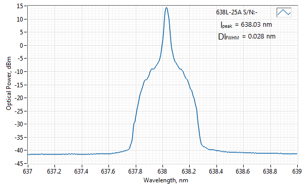 Лазер, работающий на длине волны 638 нм с одной продольной модой, может использоваться для комбинационного рассеяния света (Романовская спектроскопия) или SERDS (shifted excitation Raman differential spectroscopy) спектроскопии. Вместе с SLM лазером на длине волны 633 нм данный модуль идеально подходит для SERDS. Рамановские сигналы намного легче отделить от фонового шума по сравнению с традиционной рамановской спектроскопией. Лазер имеет VBG (Volume Bragg Grating) стабилизацию, что обеспечивает узкую спектральную линию на центральной длине волны +/- 0.1 нм.