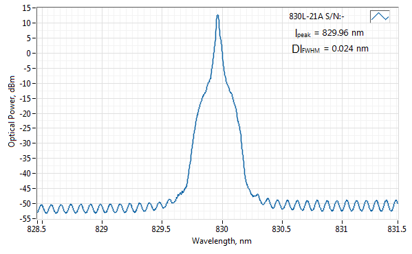 1. Измерено с помощью сканирующего интерферометра Фабри-Перо с разрешением 7.5 МГц и частотой сканирования около 10 Гц. Тестирование интерферометра не проводится для каждого производимого лазера, вместо этого стандартным тестом является измерение OSA с разрешением 10-20 мкм;