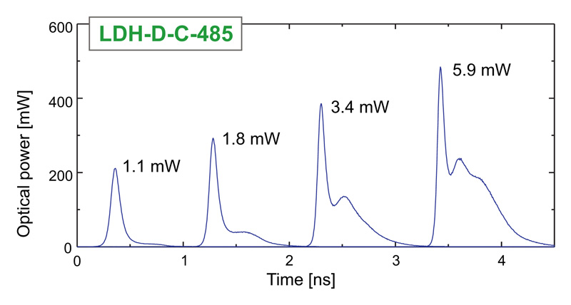 Лазерные головки серии LDH предназначены для выработки почти постоянной энергии импульса при заданной настройке интенсивности. Обычно достигаемая энергия импульса составляет несколько десятков пДж. При частоте следования 40 или 80 МГц это соответствует средней выходной мощности в несколько мВт. Следует обратить внимание, что с увеличением выходной мощности временной профиль импульса диодов всегда будет расширяться и может показывать дополнительные пики или плечи.
