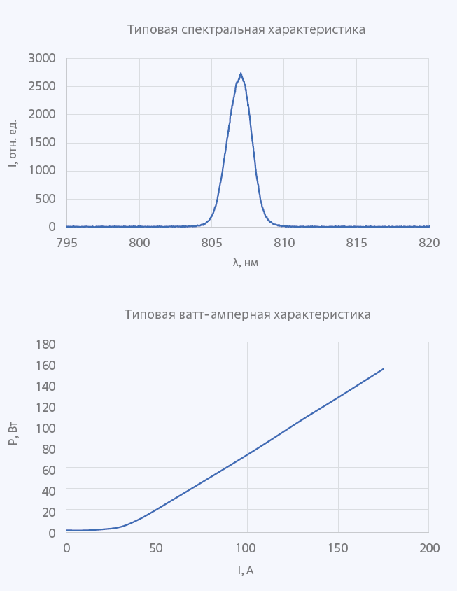 * Контроль основных параметров осуществляется на теплоотводе (тип 012) с температурой 25°C, при номинальной средней мощности импульса лазерного излучения, длительности импульса 250 мкс и частоте 25 Гц.