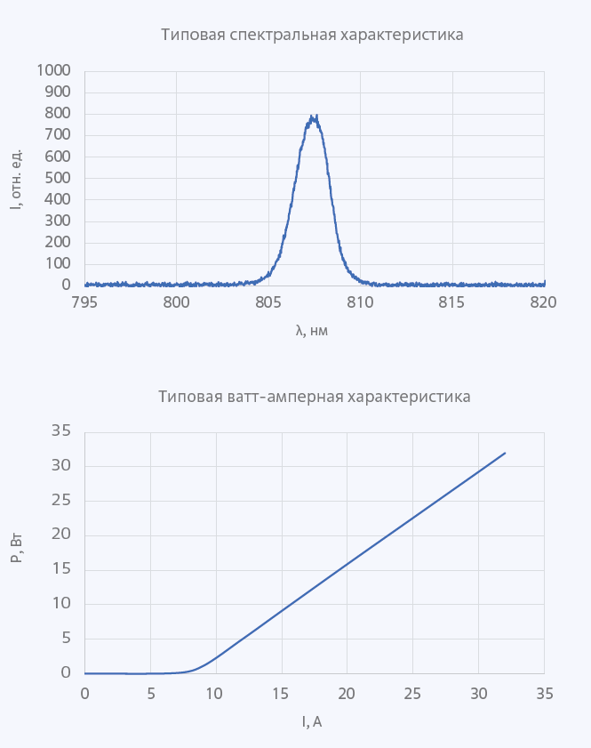 * Контроль основных параметров осуществляется на теплоотводе (тип 012) с температурой 25°C, при номинальной средней мощности импульса лазерного излучения, длительности импульса 250 мкс и частоте 25 Гц.