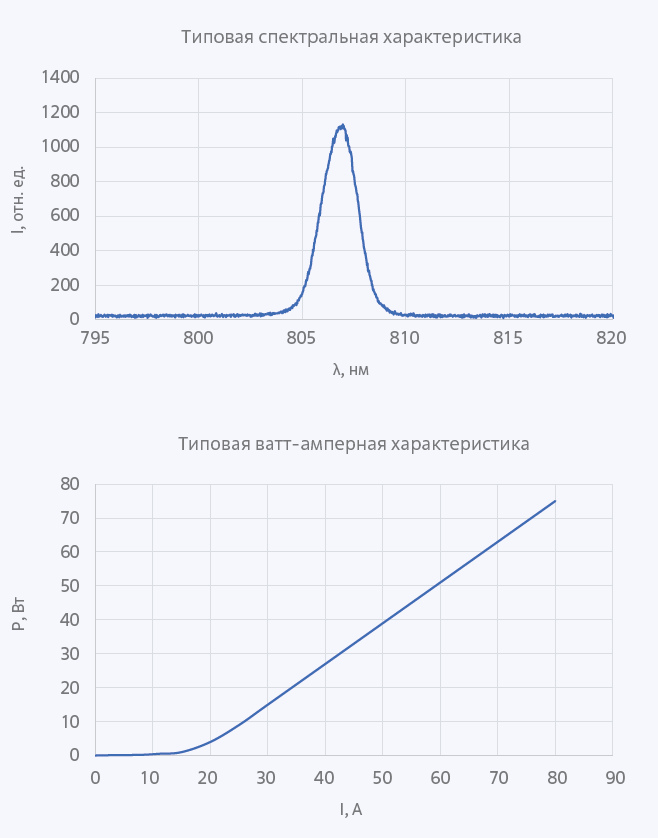 * Контроль основных параметров осуществляется на теплоотводе (тип 012) с температурой 25°C, при номинальной средней мощности импульса лазерного излучения, длительности импульса 250 мкс и частоте 25 Гц.