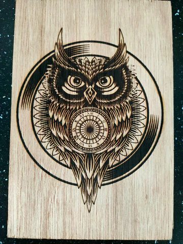 Лазерная гравировка на фанере с использованием лазерной линзы G7. Скорость 500 мм/мин, мощность 75%