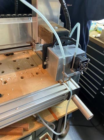 Устройство для лазерной резки Duos представляет собой насадку на 3D-принтер/станок с ЧПУ, состоящую из двух совмещенных лазеров, имеет выходную мощность 15 Вт (15 000 мВт) и включает в себя 2 воздушных сопла.