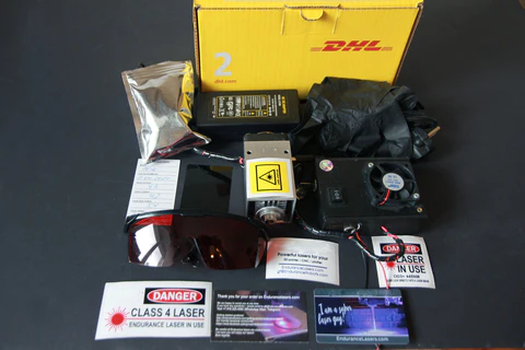 - Диодный 10-ваттный лазерный модуль 445 нм; - Плата управления лазером (драйвер лазера) с PMW Mo1; - Лазерные защитные очки; - Лазерные разъемы для подключения к плате; |