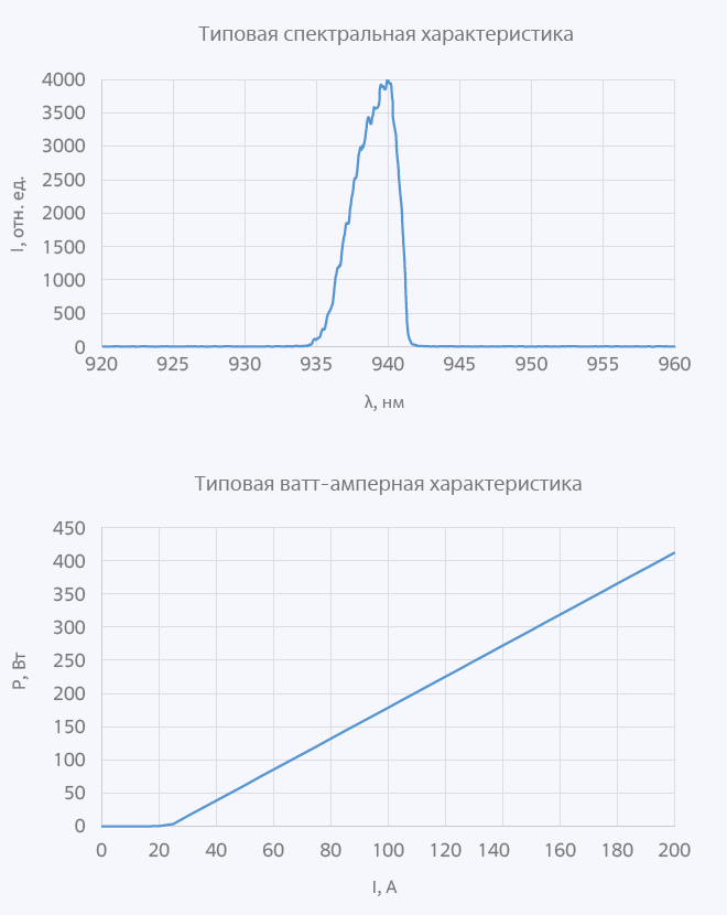 Применения:- Эффективная оптическая накачка лазеров; - Лазерные системы для технологических применений; - ИК лазерные осветители с высокой оптической плотностью мощности; - Лазерные медицинские приборы; - Оптические приборы и научные исследования. |