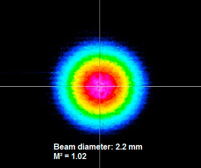 Большинство моделей VisIR имеют почти идеально круглый профиль пучка гауссовой формы (TEM00), который может быть указан как значение M² <1.1, с типичным значением M² ~1.02. Это важный параметр для дальнейшего точного формирования пучка (например, «STED-Donut» для VisIR-765-HP «STED»).