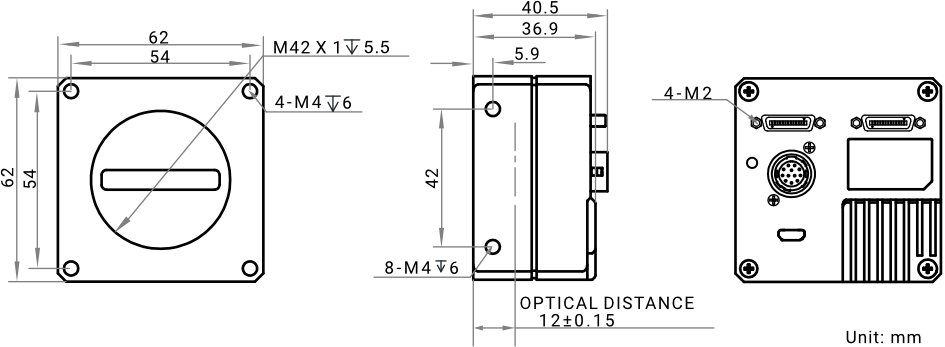 Крепление объектива | M42*1.0, длина заднего фланца 12 мм, подходит для объективов с креплением F, C и других типов через адаптер для объектива |