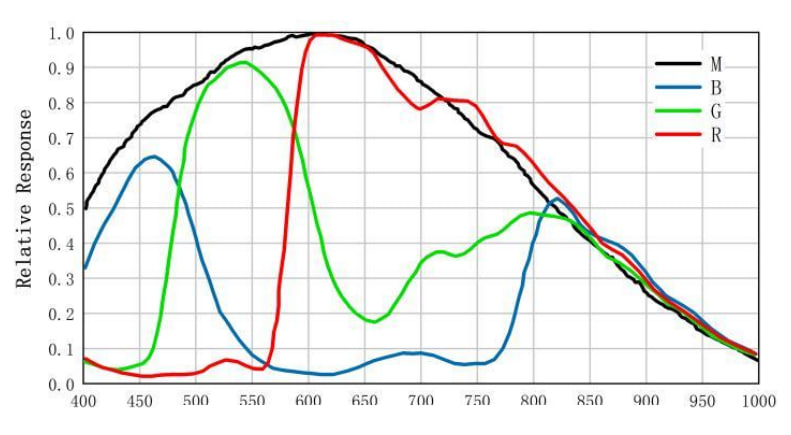 График показывает относительную чувствительность матрицы к различным длинам волн света.