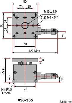 Квадратный столик для оси Z 60 мм (#55-032) и квадратный столик для оси Z 80 мм (#56-335) совместимы со следующими столиками: #54-687, #55-459, #55-527, № 55–840, № 55–841, № 56–335 и № 56–336.