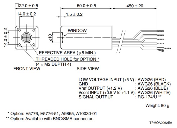 Серии модулей ФЭУ H10720 и H10721 представляют собой модули фотоумножителей, содержащие ФЭУ в металлическом корпусе и высоковольтную цепь питания. Во встроенном ФЭУ используется металлический корпус того же диаметра, что и металлический корпус ТО-8, используемый для полупроводниковых фотоприемников. Несмотря на небольшой размер, почти равный фотодиодам, этот модуль обеспечивает высокий коэффициент усиления, широкий динамический диапазон и высокую скорость отклика.
