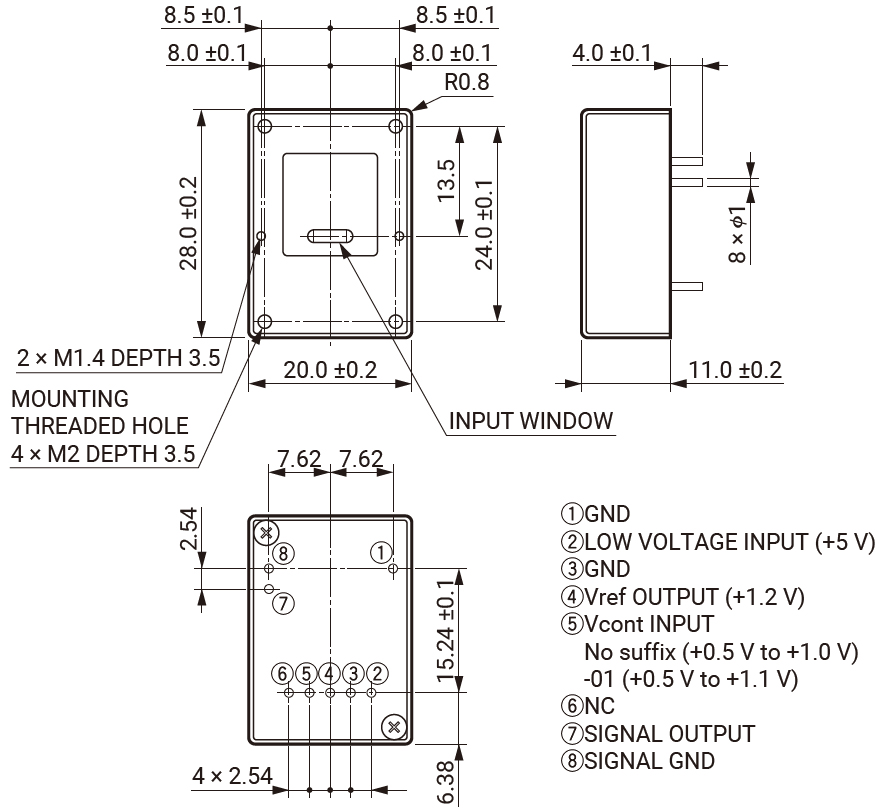 Серия H14066 является наиболее распространенным стандартным типом микро ФЭУ и имеет встроенный высоковольтный источник питания. H14066-01 – это модуль микро ФЭУ на основе многощелочного фотокатода со спектральным откликом от 300 нм до 850 нм.