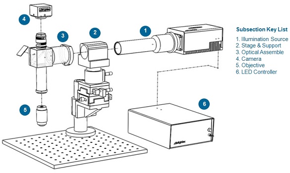 Оптическая сборка системы OASIS компании от Mightex позволяет пользователю связать все элементы в уникальную конфигурацию, подходящую под требования заказчика. Для начала пользователю необходимо решить какой объектив ему больше подходит: макрообъектив или микроскопическая оптика. Микроскопическая оптика подходит для применений, требующих оптику схожую с коммерческими микроскопами. Макроскопический объектив требуется в том случае, когда необходим широкий угол обзора без потери интенсивности. Пользователь также может выбрать количество мест под фильтры для установки в оптическую сборку, вариант с двумя камерами или совместимость с объективами известных фирм.