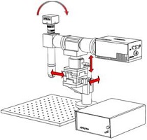 Основание и координатная система позволяют не только собрать всю конструкцию вместе, но и наилучшим образом позиционировать систему OASIS компании от Mightex относительно исследуемого образца путем изменения угла наклона. Также доступны версии координатной системы с приводом.