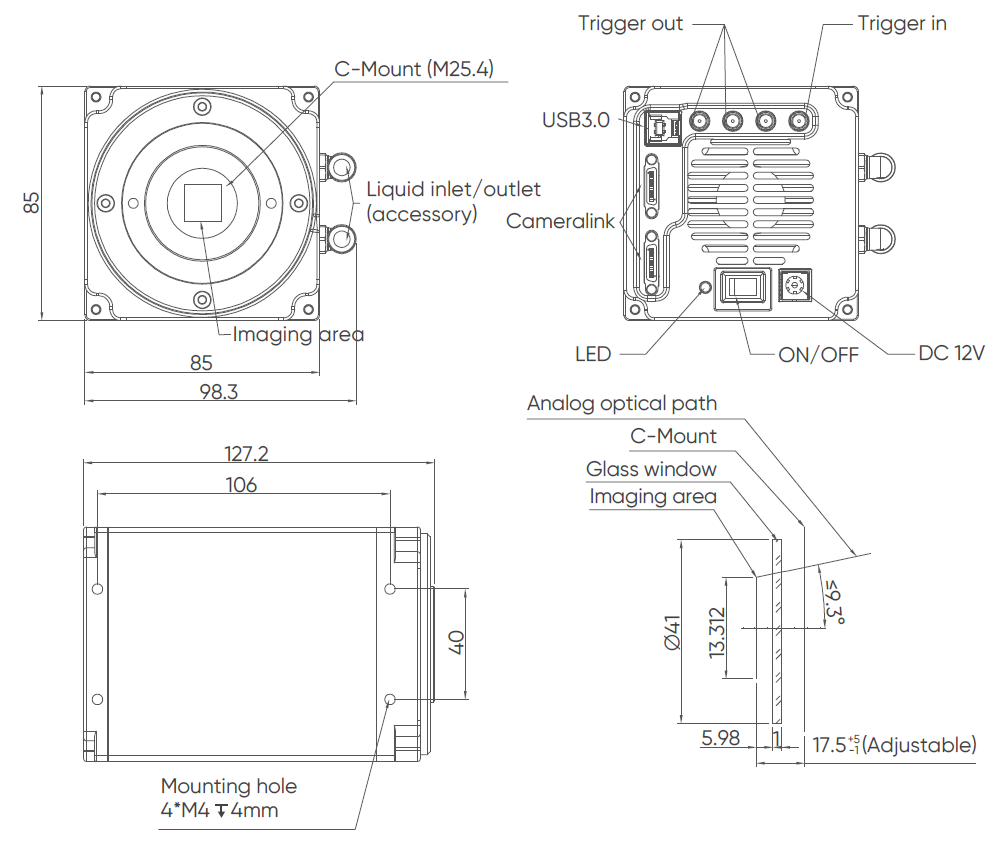 Особенности:- Квантовая эффективность 95% при 600 нм; - Разрешение 2048 x 2048 пикс; - Размер пикселя 6.5 мкм x 6.5 мкм; - Макс. частота кадров 100 кадр/с через CameraLink; - Интерфейс передачи данных CameraLink и USB3.0. |