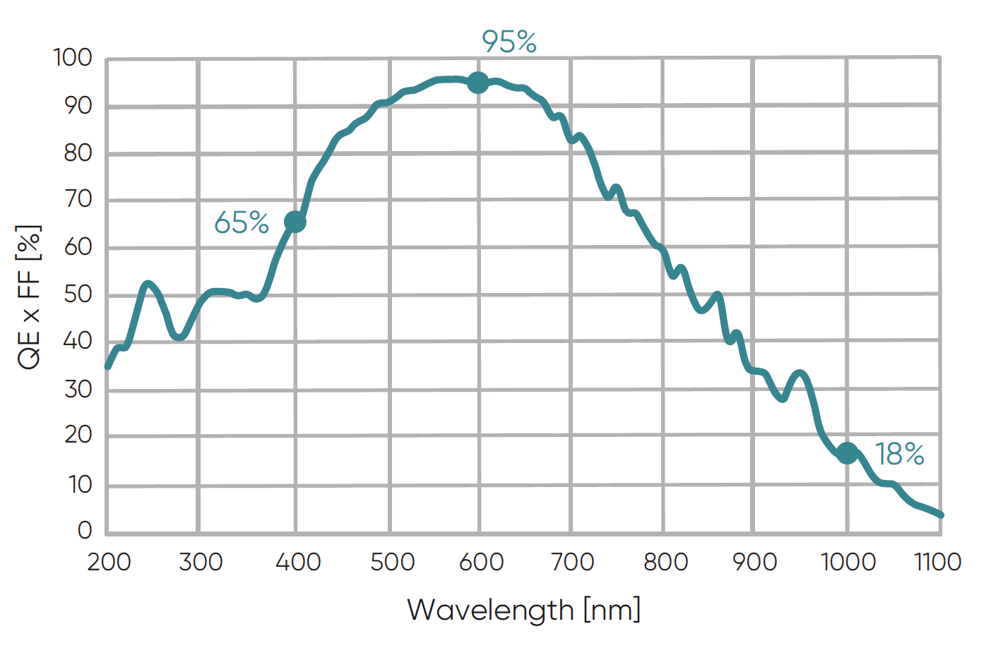Почти идеальная квантовая эффективность означает захват почти каждого фотона, который встречается на пути. В сочетании с электроникой с низким уровнем шума можно захватывать изображения с высоким отношением сигнал/шум даже при слабом сигнале.