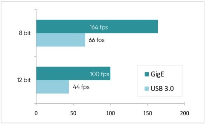 В Libra 3405M используется глобальная технология затвора, обеспечивающая четкую и быструю съемку движущихся образцов. Он также оснащен более быстрым интерфейсом GigE, что удваивает общую скорость обработки изображений по сравнению с USB3.0. Скорость полного разрешения может достигать 100 кадров в секунду при 12 битах и до 164 кадров в секунду при 8 битах, что значительно повышает пропускную способность пакетного детектирования в приборных системах.