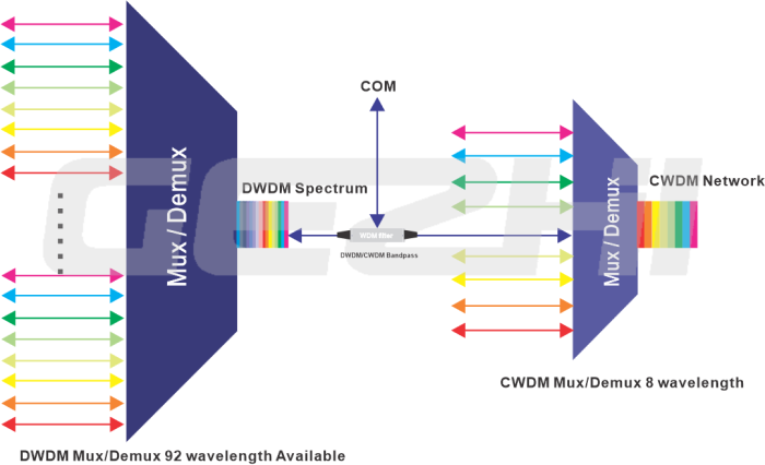 Существует два типа стандартов мультиплексирования с разделением по длине волны (WDM): CWDM - грубое мультиплексирование с разделением по длине волны, и DWDM - плотное мультиплексирование с разделением по длине волны. Раньше CWDM был более популярным недорогим вариантом для многих заказчиков для скоростей GbE из-за разницы в экономическом масштабе (обычно треть стоимости эквивалентной оптики DWDM), ограниченного бюджета и типичных первоначальных требований не превышать 8 длин волн. По мере роста потребности в пропускной способности и увеличения скорости обслуживания до 10G/40G/100G возникает потребность в увеличении пропускной способности существующих сетей CWDM.