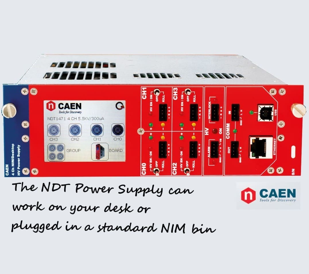 NDT1470 представляет собой 4-канальный высоковольтный источник питания, который может использоваться в формате NIM. CAEN Mod. NDT1470 предоставляет 4 независимых высоковольтных канала в модуле NIM. Также поддерживается настольное использование (питание от сети 110/220 В). Каждый канал может обеспечивать максимальное напряжение ±8 кВ, максимальный ток 3 мА и максимальную мощность 9 Вт (максимальная мощность 8 Вт, когда выходное напряжение превышает ±3 кВ). Выходная полярность независимо выбирается для каждого канала.